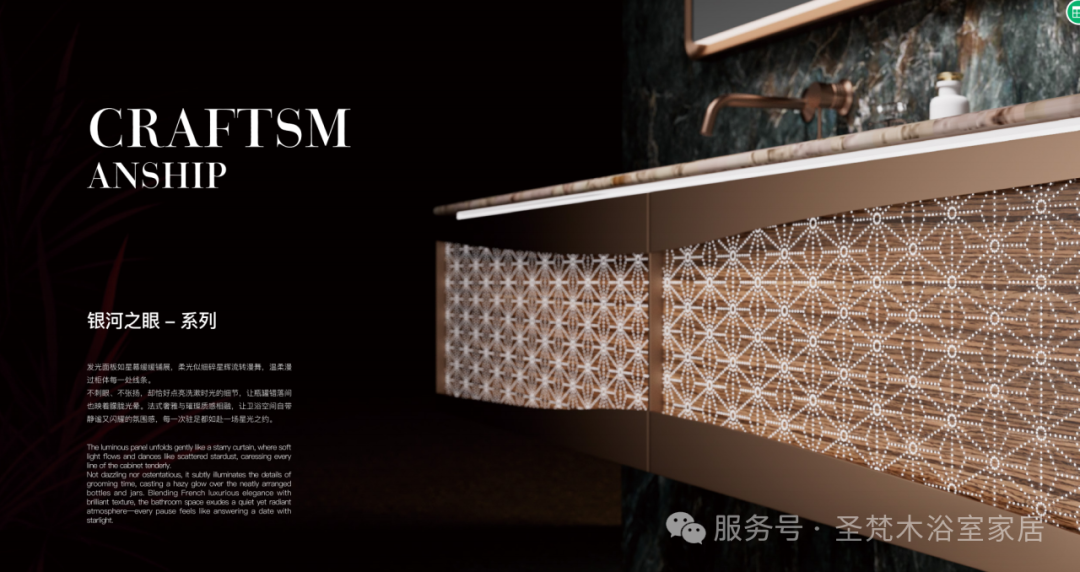 历经十年发展,圣梵木积累了丰富的原创经验,并将之融入“高端定制”这一品牌基因,围绕“原创轻奢、极简实木”的核心方向,跳出传统实木卫浴的厚重刻板印象,以极简设计和轻奢美学,打造出一批又一批契合用户需求与现代家居美学潮流的浴室柜精品。