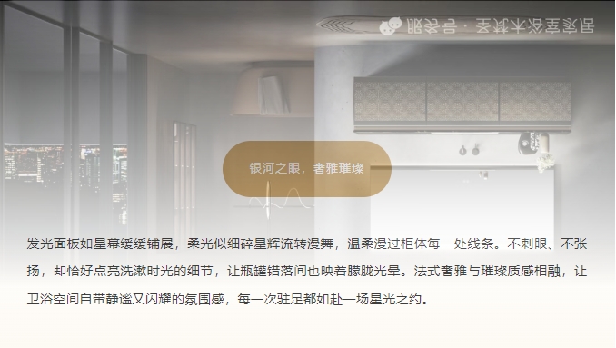 星辉漫入卫浴间,柜体如星轨流转,金属线条映着柔光,似星光轻舞。藏纳日常,亦彰显格调,让每一次洗漱,都伴着璀璨质感与法式优雅。