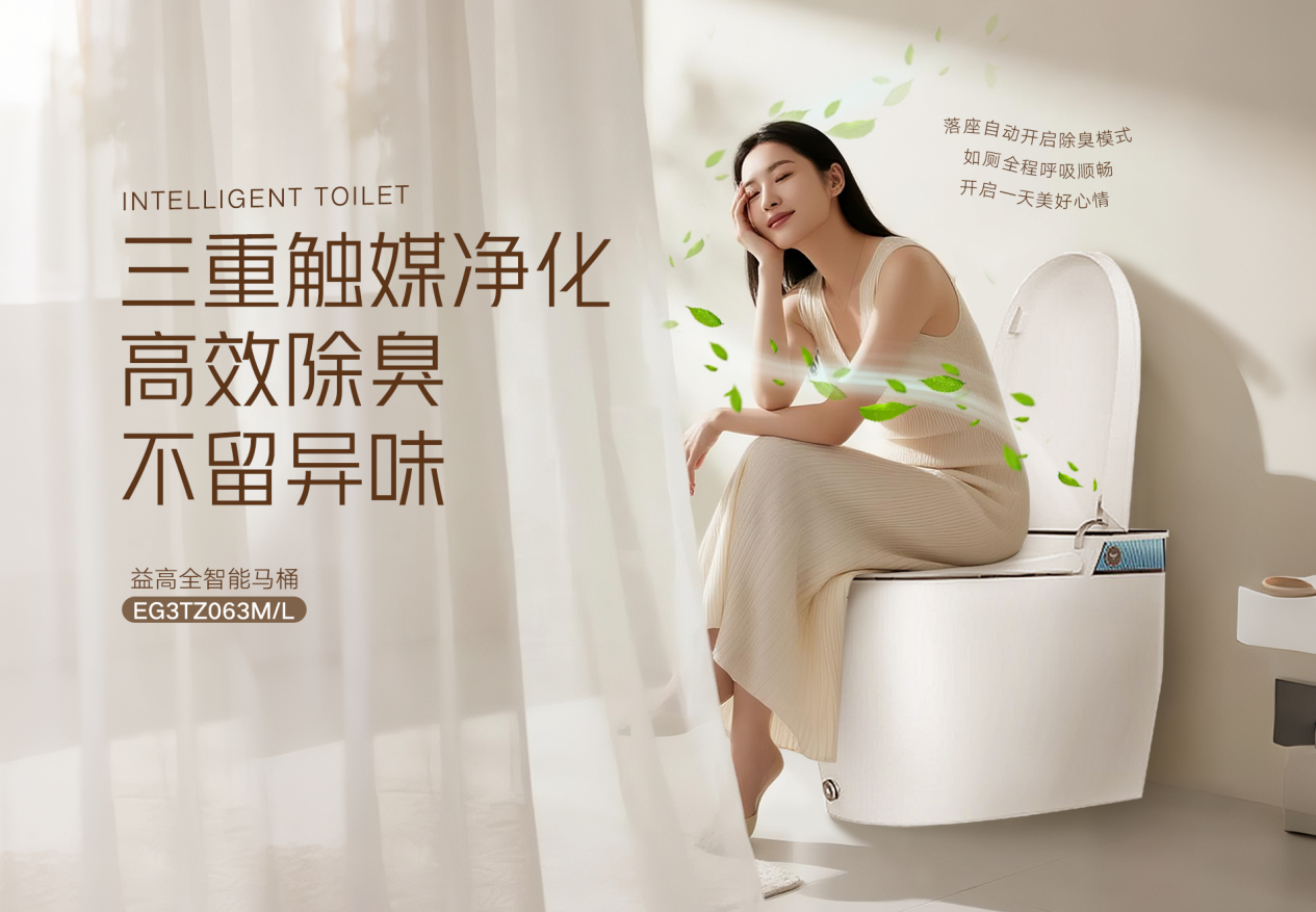 产品是品牌竞争的核心底气,2025年益高卫浴精准把握行业智能化、绿色化的发展趋势,以用户需求为导向持续深化研发创新,推动产品矩阵向“智能升级、健康环保、场景适配”全方位进阶。依托联塑集团强大的产业协同优势,益高在核心技术领域持续突破,不仅实现恒温加热、自动冲洗等基础智能功能,更搭载水质过滤、抗菌釉面等核心配置,全方位守护用户健康。