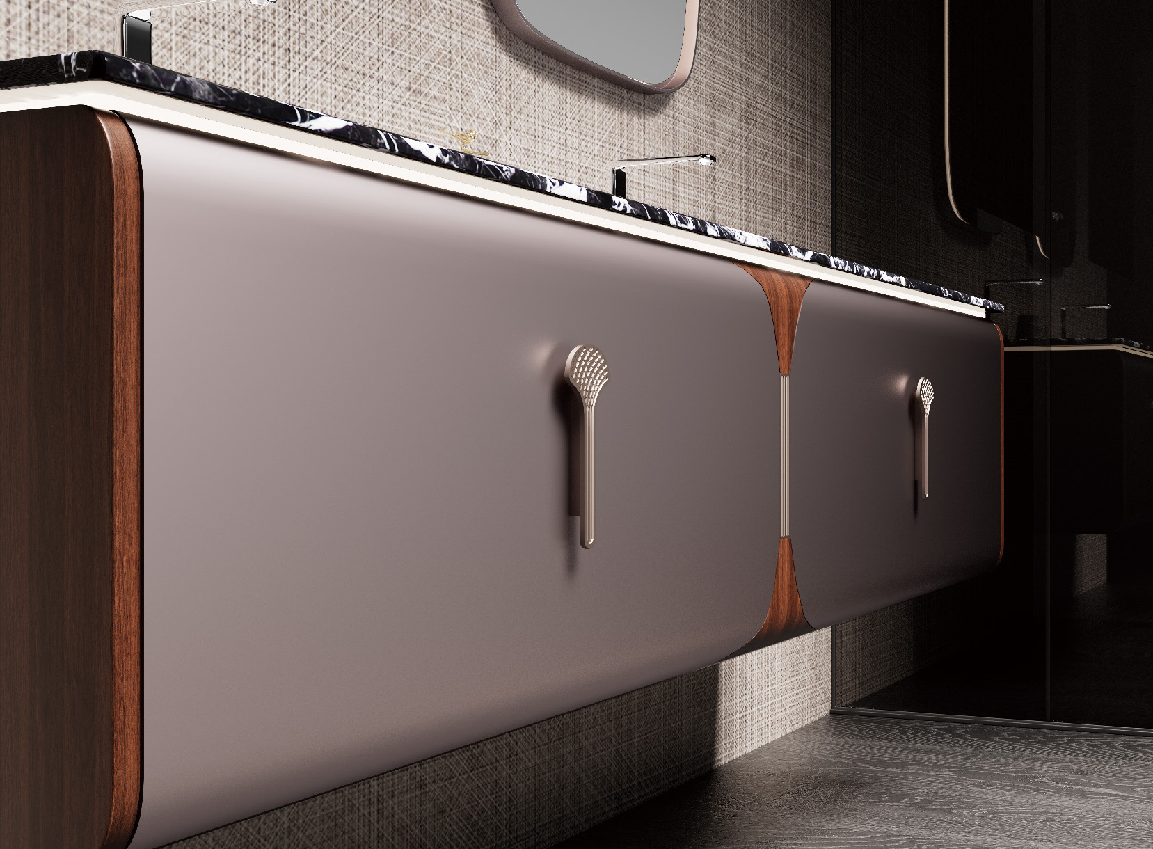 细节之处更见匠心。圣梵木采用隐藏式拉手设计,既契合“简素生活”的美学主张,又能避免磕碰与积灰;柜体背板全部采用防水贴面处理,边缘包裹密封胶条,从细节处阻断水汽渗透路径。针对定制产品的特殊性,圣梵木对每一个异形尺寸、特殊结构都进行精准建模与反复调试,确保产品不仅适配不同卫浴空间布局,更能保持结构稳固与使用安全。这种对工艺的极致追求,让圣梵木的浴室柜不仅是实用的家居单品,更成为兼具美学价值与工艺质感的艺术臻品。