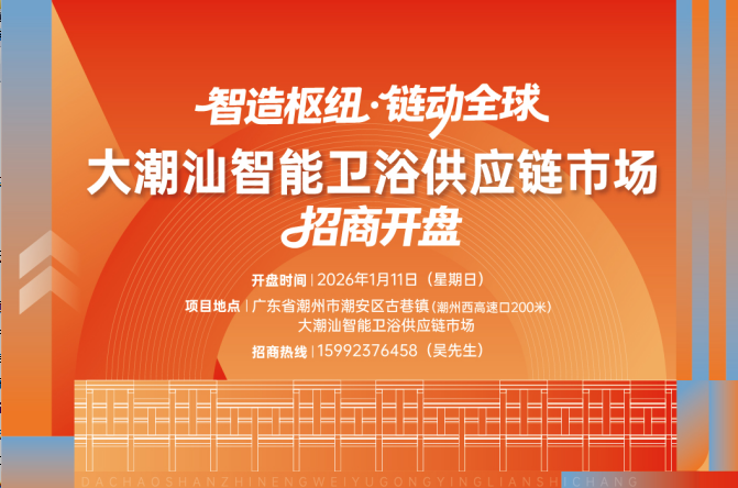 2026年1月11日上午,位于“中国瓷都”潮州的潮安区古巷镇大潮汕智能卫浴供应链市场,正式拉开招商开盘帷幕。