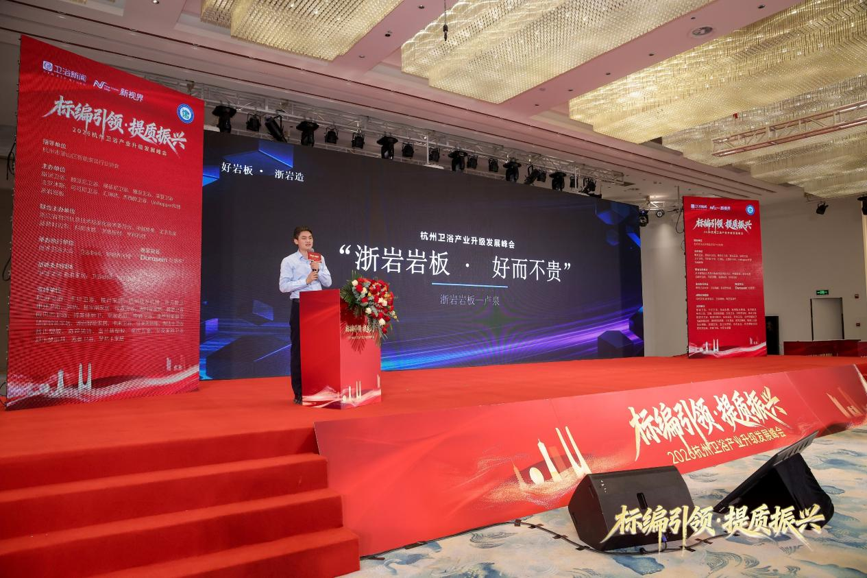 谈及材料革新对产区振兴的意义,卢泉强调,杭州卫浴要实现 “标编引领,提质振兴” 的目标,离不开优质材料的底层支撑。浙岩岩板始终以产区需求为导向,组建资深技术团队攻坚核心技术,将创新成果快速转化为生产力,通过持续的产品迭代为本地卫浴企业的差异化竞争注入动能。未来,浙岩岩板将进一步加大研发投入,深化与杭州卫浴企业的协同合作,从产品研发、技术支持到定制化解决方案输出,全链条赋能企业提升产品附加值,共同推动 “杭州卫浴” 集体品牌影响力升级。其专业且务实的分享,紧扣产区发展痛点与行业趋势,赢得现场嘉宾的广泛认同与热烈掌声。
