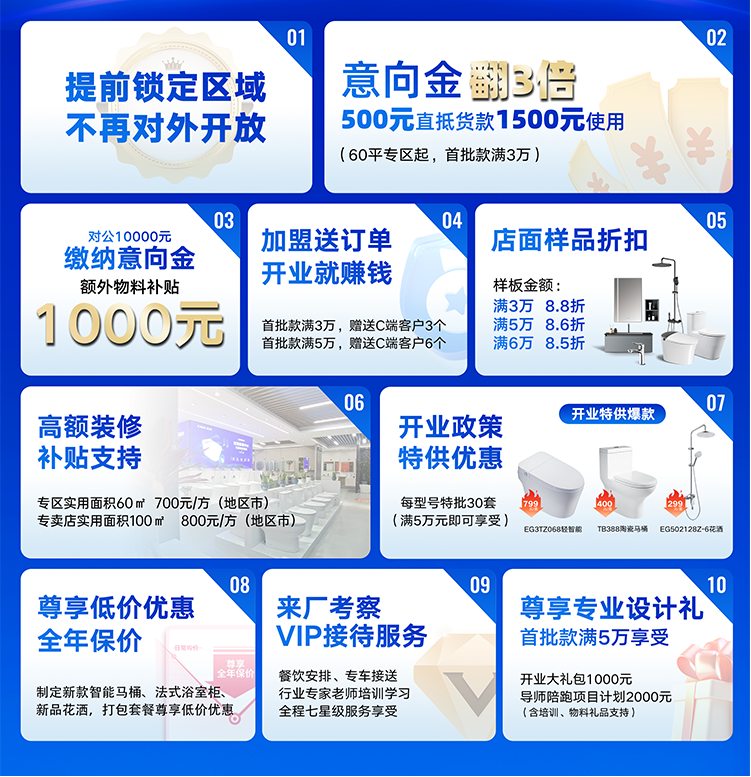 益高为经销商打造从开店到运营、从引流到售后的全链路扶持体系,零经验也能轻松入局。开店端,免费提供店面设计、装修补贴、样品折扣、开业礼包,大幅降低前期投入;营销端,总部统一策划节日促销、直播带货、小区团购、家装联盟等活动,提供全套物料与方案,同时线上全域引流,精准推送客户到店;培训端,开展线上 + 线下系统化培训,覆盖产品知识、销售技巧、安装售后、门店管理,打造专业团队;运营端,区域经理一对一驻店帮扶,拓客引流、渠道开发,总部统一售后,经销商无需承担售后压力;工程端,共享联塑工程资源,提供投标、报价、落地全流程支持,轻松拿下大额订单。此外,益高实行区域独家保护、高毛利空间等政策,构建零售 + 家装 + 工程 + 社区团购四大盈利渠道,单店盈利模型成熟,回本周期短,长期收益稳定。