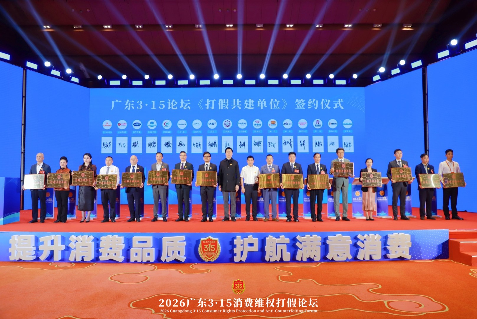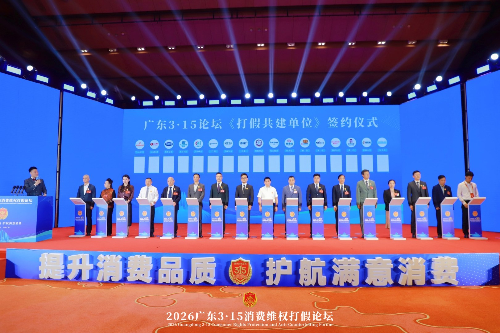 广东3.15《打假共建单位》签约仪式现场 情调淋浴品类创始人周立魁左4