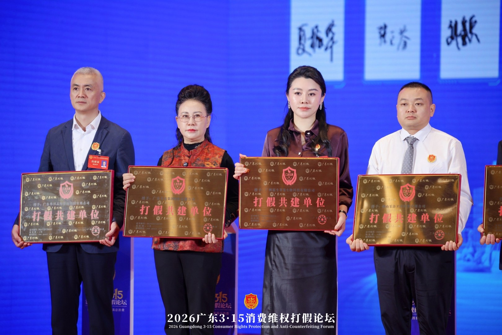 洁柔 浴旺 华浔品味 联合利华等广东省优秀企业及品牌 3.15同台领奖打假共建单位