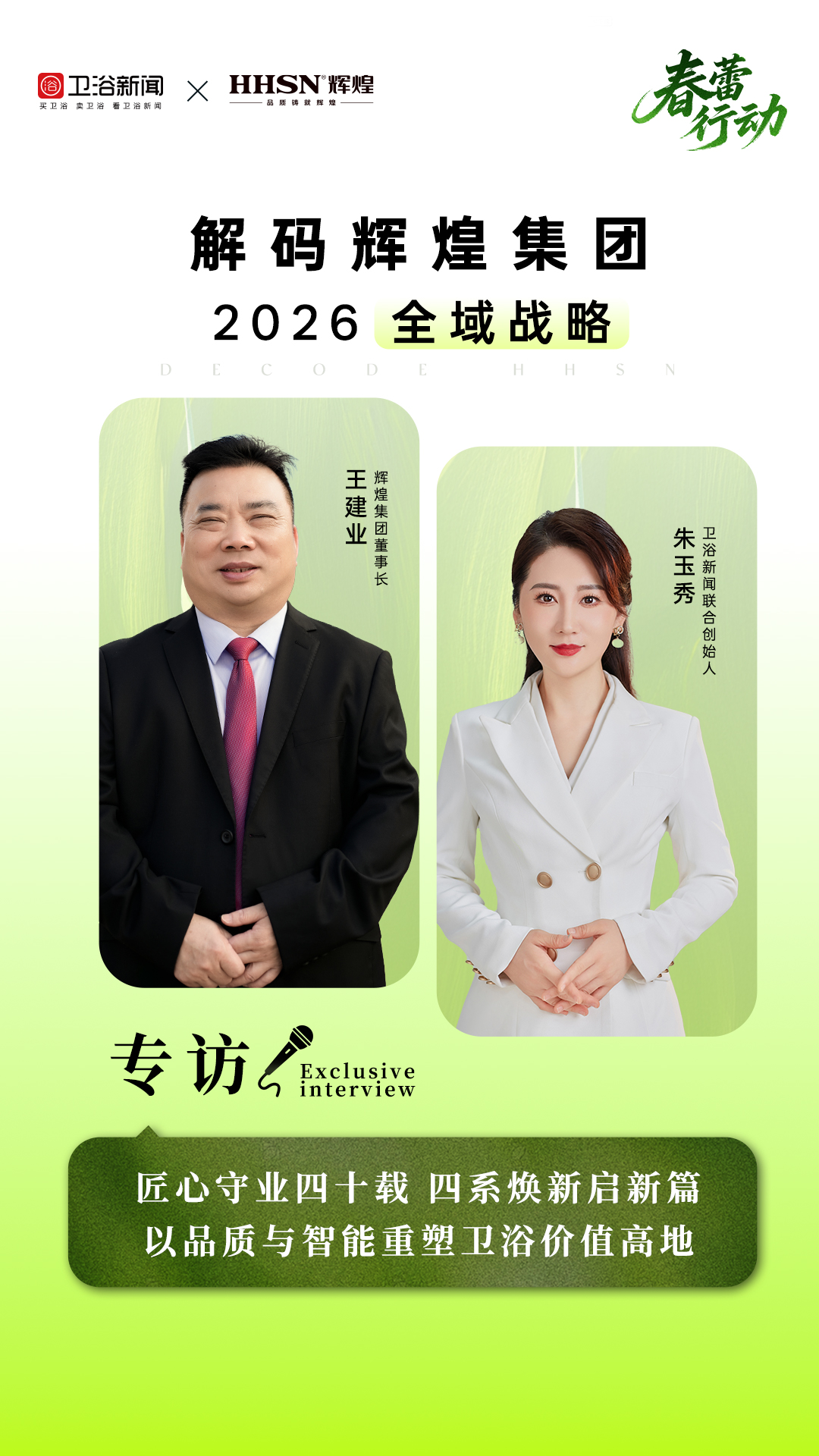 自 1988 年扎根福建南安以来,辉煌集团深耕卫浴领域近 40 载,从最初的水暖产品,发展成为涵盖厨卫全品类的多元化产业集团,连续 15 次荣获 “亚洲品牌 500 强”,品牌价值高达 680.21 亿元。当前卫浴行业存量竞争加剧,转型与机遇并存,辉煌将做出怎样的战略布局?今天我们有幸采访到辉煌集团董事长王建业,听他解读辉煌 2026 全新战略。