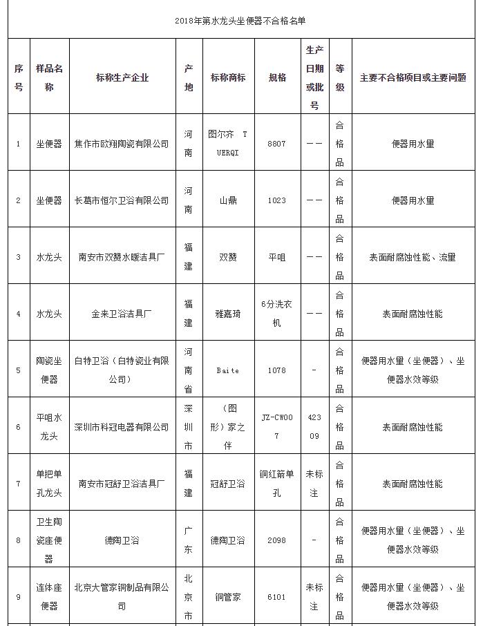 北京市抽检:15批次水龙头座便器类商品不合格