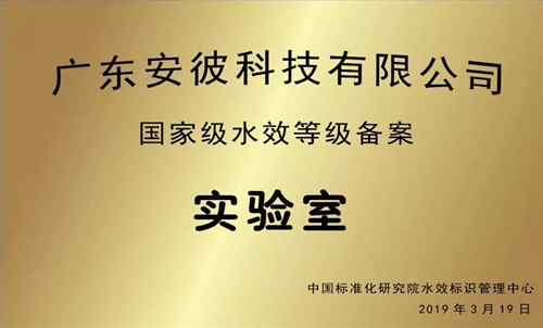 2019年3月19日,广东安彼科技有限公司检测实验室成功通过“中国标准化研究院水效标识管理中心”备案公示企业自有实验室,国家级水效等级备案实验室。