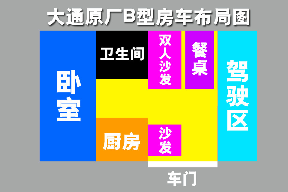 同时内部布局是非常传统的“一室一厅一厨一卫”,前驾驶、中客厅、后置厨房和卫浴间以及横向的双人床。