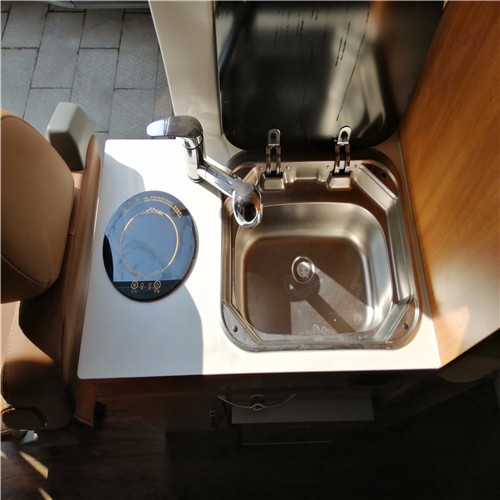 上汽大通原厂B型的厨灶系统是非常精简的,集电磁炉、洗水池、小冰箱,储物柜于一体的灶台足以满足日常的烹饪需求。特别是到了盛夏季节,在外野营时能有一个小冰箱在车上是多么幸福的事啊!