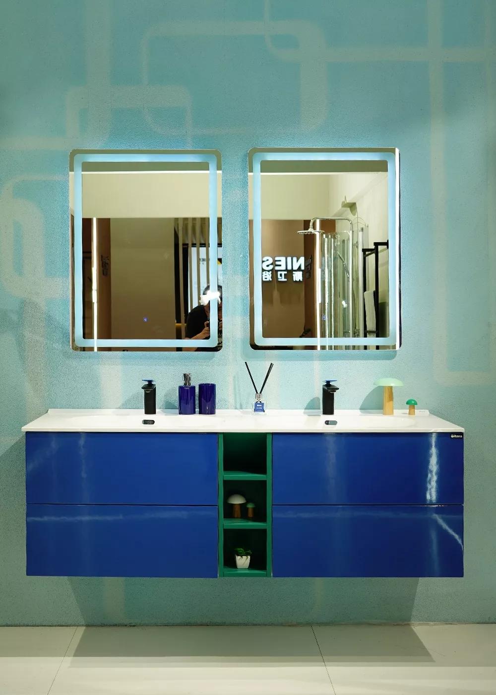 个性复古的蓝色柜体,极具质感的陶瓷台面,双智能镜柜在方便使用的同时装饰了整个空间,双台盆大气而富有艺术感,组合成了这一款自带北欧轻奢风的浴室柜。流畅的线条,高级的配色,复古与现代相结合,带给空间不一样的轻奢质感。