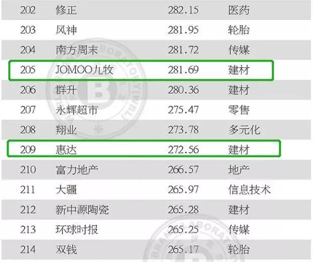 从榜单上看,国家电网以4575.36亿元荣登榜首,工商银行、海尔、腾讯、中国人寿、华为等国内知名企业紧跟随后。卫浴方面,据卫浴头条网记者统计,共计5家卫浴企业上榜,分别为九牧、惠达、箭牌、恒洁和法恩莎,其中九牧以281.69亿品牌价值位列总排名第205名,惠达272.56亿品牌价值位列第209名,箭牌204.75亿品牌价值位列第287名,恒洁147.25亿品牌价值位列第341名,法恩莎88.75亿品牌价值位列第397名。